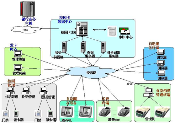 校園一卡通系統(tǒng)通過(guò)在校園食堂、浴室、開(kāi)水房、班車(chē)等場(chǎng)所部署終端設(shè)備,實(shí)現(xiàn)各應(yīng)用場(chǎng)所的刷卡小額消費(fèi)功能,方便快捷,方便師生校內(nèi)生活。