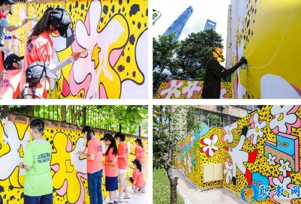 7月的上海浦東,立邦「為愛上色」藝術(shù)+藝術(shù)家FELIX_勺子為東昌路街區(qū)設(shè)計了一幅百米墻繪,用花朵與飛鳥表達(dá)自由美好,用明媚色彩點綴城市空間?!笧閻凵仙惯€組織了社區(qū)居民與中小學(xué)生參與共同創(chuàng)作,你一筆我一畫,一幅色彩明麗、生機勃勃的畫卷在眾人的努力下漸漸完善,成為了集體創(chuàng)造的藝術(shù)品。