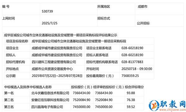(截圖自四川招標(biāo)網(wǎng)) 此外,記者注意到,四川招標(biāo)網(wǎng)近日發(fā)布的《成華區(qū)城投公司城市立體交通基礎(chǔ)設(shè)施及空域管理一期項目采購標(biāo)段評標(biāo)結(jié)果公示》顯示,北斗伏羲以736.64萬投標(biāo)價格擬中標(biāo)。此前,北斗伏羲還分別以9995.5萬和9321萬價格中標(biāo)天津北辰區(qū)低空空域信息網(wǎng)系統(tǒng)工程項目和長春低空智聯(lián)網(wǎng)基礎(chǔ)設(shè)施軟件采購項目。 業(yè)內(nèi)人士樂觀表示,投資北斗伏羲,有望使學(xué)大教育在低空經(jīng)濟職業(yè)教育領(lǐng)域構(gòu)建完整產(chǎn)業(yè)鏈布局,并且有助于增強企業(yè)的盈利能力?!爱a(chǎn)業(yè)學(xué)院模式具備高度可復(fù)制性,能夠顯著提振合作伙伴與行業(yè)市場信心。長期來看,隨著公司培養(yǎng)的專業(yè)人才持續(xù)反哺產(chǎn)業(yè)以及學(xué)大職教品牌影響力深化,其盈利路徑將更加多元,市場份額也將不斷擴大?!?/span> 另據(jù)分析,此次合作的更深層價值在于,學(xué)大教育將通過深度參與低空基礎(chǔ)設(shè)施與生態(tài)構(gòu)建開辟新的增長曲線,同時能夠?qū)⒐驹趯I(yè)領(lǐng)域的積淀延伸至國家戰(zhàn)略前沿,從而強化其在行業(yè)內(nèi)的領(lǐng)導(dǎo)地位。而學(xué)大教育廣泛的渠道資源,也有望加速北斗伏羲低空數(shù)字底座技術(shù)在諸多垂直領(lǐng)域的深度創(chuàng)新融合,進而持續(xù)助推釋放技術(shù)社會化應(yīng)用的商業(yè)潛能。 聯(lián)系我時請說明是在“職教網(wǎng)m.gz-zh.com”看到的,謝謝! |