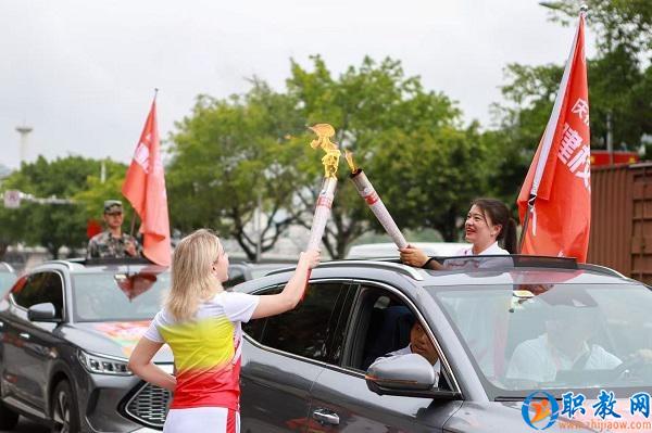 火炬?zhèn)鬟f活動。重慶信息技術職業(yè)學院供圖 10月1日,“返校護照·重信校園開放日”讓校友們手持“護照”重溫青春記憶;校友會總會2025年會的召開,則為全球校友構建起一個情誼聯(lián)結與資源共享的堅實平臺。當夜幕降臨,煙火地攤集市、千人烤魚宴、集體生日會與“飛火銀花重信秀”等環(huán)節(jié)接連上演,為所有參與者呈現(xiàn)了一場融匯傳統(tǒng)風情與現(xiàn)代創(chuàng)意的校園慶典盛宴。