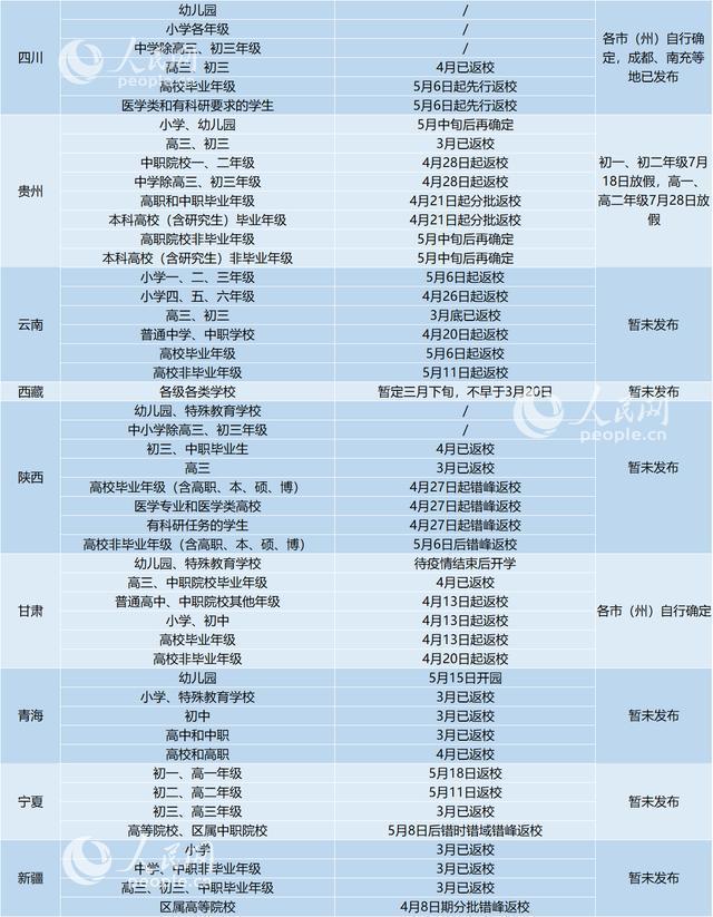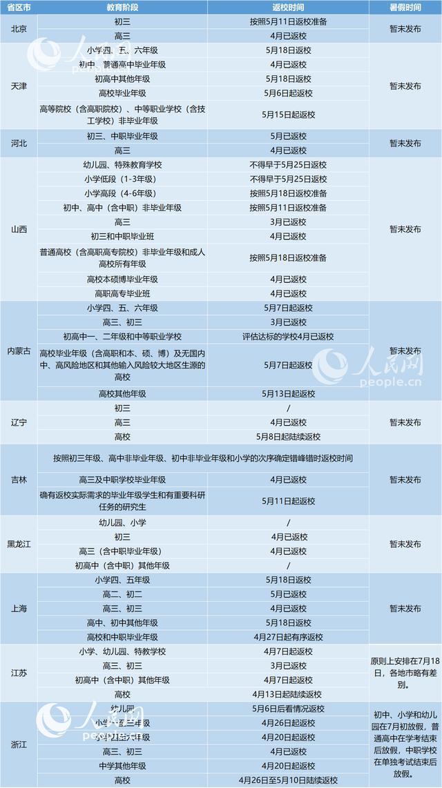 各省區(qū)市各級(jí)各類(lèi)學(xué)校返校時(shí)間表一覽