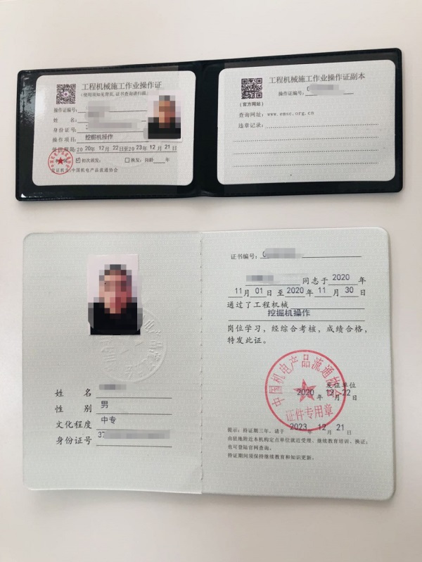 | 建設(shè)工程機(jī)械施工節(jié)能作業(yè)操作證 | 挖掘機(jī)操作員 | 建設(shè)工程機(jī)械委員會 | 2寸電子版照片1張,身份證和學(xué)歷證復(fù)印件1張 |