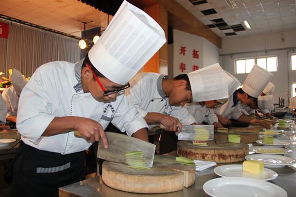 煙臺(tái)工貿(mào)技師學(xué)院舉行的此次活動(dòng)共有222人參加,參加賽事的共有兩個(gè)大項(xiàng)六個(gè)小項(xiàng)進(jìn)行參賽,總共包括烹飪專業(yè)勺工、拉肉絲、疙瘩切絲、土豆切絲和面點(diǎn)專業(yè)搟餃子皮并包餃子、抻面等。還有雕刻技能的展示,共制作了龍鳳呈祥、百花齊放、喜慶豐收、海鮮薈萃雕刻冷拼中西面點(diǎn)展示。