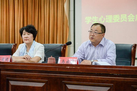 成立儀式于下午兩點在院禮堂舉行,馬成祿副院長、工會張凱主席、機關(guān)黨總支宋業(yè)雷書記、華太職業(yè)培訓(xùn)學(xué)校校長、應(yīng)用心理學(xué)會會長孫運健女士、知名心理專家唐向東博士,以及學(xué)生處(團委)負責(zé)同志、各系心委會負責(zé)老師、第一屆學(xué)生心委會成員共300余人參加會議。