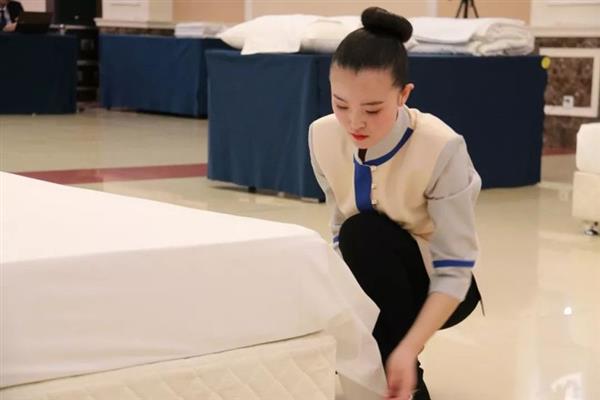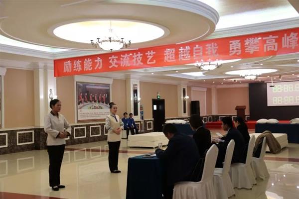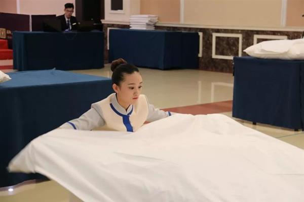 比賽內(nèi)容分為專業(yè)理論測試、專業(yè)英語口試、現(xiàn)場操作三部分?,F(xiàn)場操作比賽中,選手們端莊、大方的儀容儀表與優(yōu)美的行姿體態(tài)展示出了旅游酒店行業(yè)人員的形象風(fēng)采。中餐宴會擺臺與服務(wù)、客房中式鋪床技能比賽中,選手們沉著冷靜,用熟練、規(guī)范的操作流程,充分展現(xiàn)出嫻熟的專業(yè)技能性,極具觀賞性,給人以美的享受。