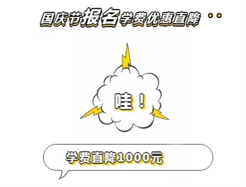 優(yōu)惠時間:從2019年9月18日——10月30日期間報名繳費的學(xué)員均可減免學(xué)費1000元。