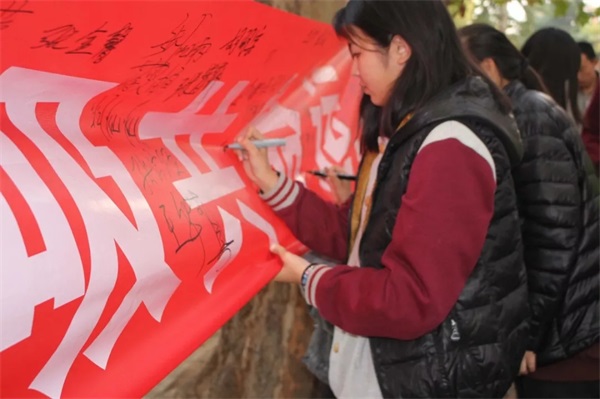 通過醒目的條幅簽字方式,讓同學們意識到抗結(jié)核不是說說而已,而是要付諸行動。同學們也紛紛向前寫下自己的名字,發(fā)表自己的決心。預防肺結(jié)核,從身邊小事做起,從你我做起。