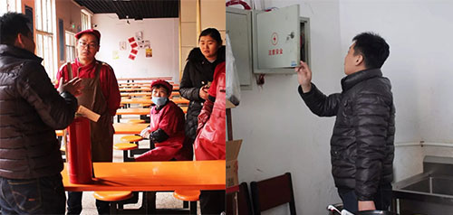田主任對(duì)于侯科長提出的問題一一記錄,并當(dāng)場要求工作人員整改,確保學(xué)生用餐萬無一失。之后,侯科長又對(duì)學(xué)校的消防安全進(jìn)行了檢查,對(duì)存在安全隱患的情況提出整改,并現(xiàn)場教餐廳工作人員如何使用滅火器。