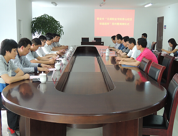 6月17日上午,“山東交通職業(yè)學院泰山校區(qū)快遞超市”簽約暨揭牌儀式在我校隆重舉行,泰安市郵政管理局陳曉局長、柴寧科長、王兵副主任,泰安申通快遞服務有限公司謝軍總..