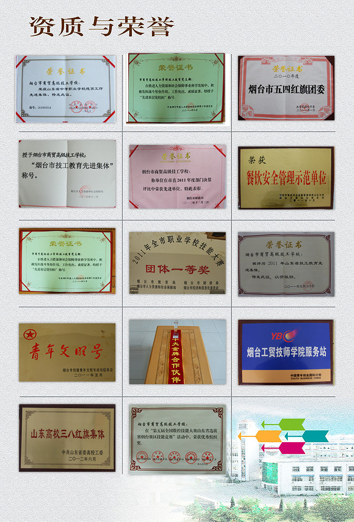 煙臺(tái)文化旅游職業(yè)學(xué)院是在煙臺(tái)工貿(mào)技師學(xué)院基礎(chǔ)上建立,全國(guó)第一所以"文化旅游"產(chǎn)業(yè)命名 的全日制職業(yè)高等學(xué)校,被授予國(guó)家級(jí)高技能人才培訓(xùn)基地、國(guó)家旅游局職業(yè)教育校企合作示范基地、 山東省金藍(lán)領(lǐng)人才培訓(xùn)基地、山東省全域旅游人才培訓(xùn)基地、煙臺(tái)工匠孵化基地、山東省文明單位和中國(guó)魯菜學(xué)府等稱號(hào)。學(xué)院全面貫徹黨的教育方針,以立德樹人為根本,以促進(jìn)就業(yè)和適應(yīng)產(chǎn)業(yè)發(fā)展需求為導(dǎo)向,堅(jiān)持"質(zhì)量立校、特色興校、創(chuàng)新強(qiáng)?!钡霓k學(xué)理念,堅(jiān)持"產(chǎn)教融合、校企合作”的辦學(xué)模式,培養(yǎng)適應(yīng)文化旅游新產(chǎn)業(yè)、新業(yè)態(tài)、新模式的新時(shí)代高素質(zhì)技術(shù)技能人才。 煙臺(tái)文化旅游職業(yè)學(xué)院位于“..