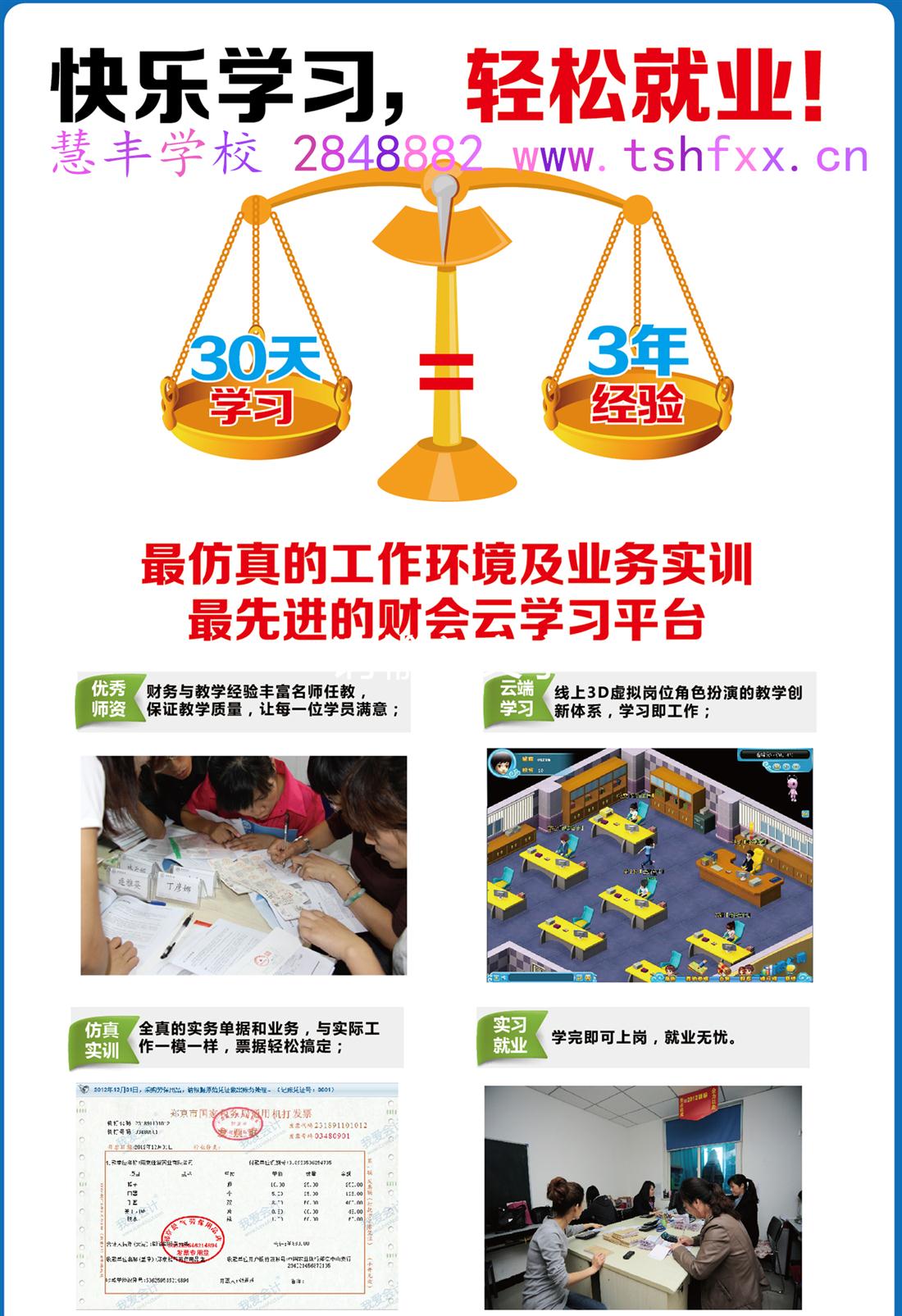 唐山慧豐會(huì)計(jì)學(xué)校創(chuàng)建于1988年,是經(jīng)唐山市教育局批準(zhǔn)成立的正規(guī)辦學(xué)單位,是專門從事各類會(huì)計(jì)培訓(xùn)和成人大學(xué)???、本科教育的培訓(xùn)學(xué)校。 在政府和各界朋友的支持下,唐山慧豐會(huì)計(jì)學(xué)校為社會(huì)培訓(xùn)了10萬多名各類復(fù)合型人才學(xué)員,遍布唐山各行各業(yè),形成了自己的特色,自己的品牌,并多次被評為優(yōu)秀辦學(xué)單位,我們致力于成為中國優(yōu)秀的培訓(xùn)機(jī)構(gòu),為社會(huì)培養(yǎng)更多的人才。 唐山慧豐會(huì)計(jì)學(xué)校師資力量雄厚,教師對學(xué)員認(rèn)真負(fù)責(zé),嚴(yán)于職守,在會(huì)計(jì)實(shí)際做賬班培訓(xùn),會(huì)計(jì)證,助理會(huì)計(jì)師,會(huì)計(jì)師的教學(xué)中,專門針對學(xué)員本身和工作實(shí)際情況,采用靈活有效合理的方法進(jìn)行教學(xué)。 隨著當(dāng)今社會(huì)經(jīng)濟(jì)..