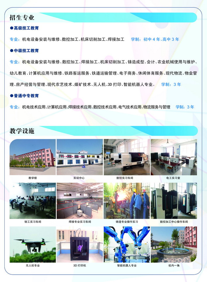 張家口工程技術學校(張家口煤礦機械制造高級技工學校)是一所已有六十多年辦學歷史的國家級重點高級技工學校,是中煤張家口煤機公司企業(yè)職工培訓基地;學校是省扶貧辦認定的省級“雨露計劃”培訓示范基地;是河北省“燕趙金藍領培訓”技師培訓基地。2007年經國家勞動和社會保障部批準晉升為高級技工學校。 張家口煤礦機械制造技工學校始建于1952年,文革期間停辦,1978年恢復辦學,是原煤炭部直屬重點技工學校,由原張家口煤機廠代管。2003年1月經河北省教育廳批準,學校增掛張家口工程技術學校牌子,屬普通中專學校。2003年12月,經國家勞動和社會保障部批準,學校晉升為國家級重..