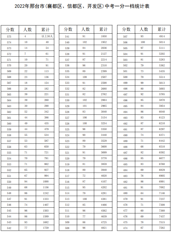 河北邢臺(tái)中考成績(jī)一分一檔公布