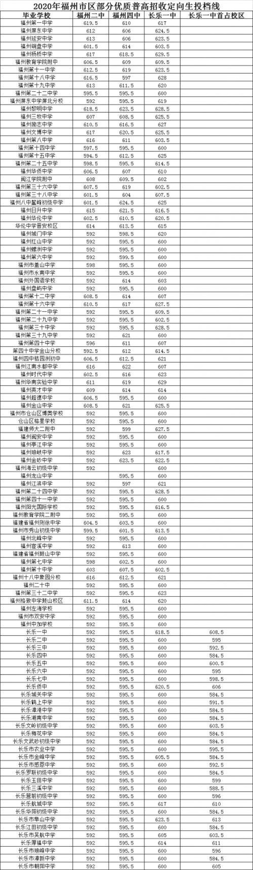 福州普高錄取分?jǐn)?shù)線2020 福州二中、四中、屏東出線