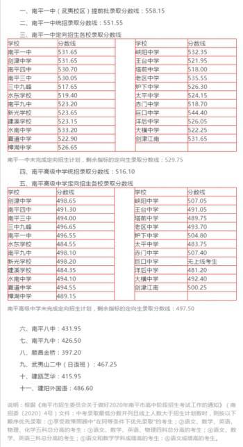 根據(jù)《南平市招生委員會關(guān)于做好2020年南平市高中階段招生考試工作的通知》(南招委〔2020〕4號)和各地2020年高中階段招生錄取工作實施方案等文件要求,現(xiàn)將2020年各縣(市、區(qū))普通高中錄取最低錄取控制分數(shù)線通告如下。