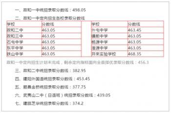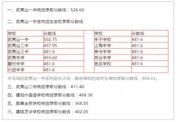 2020年武夷山市高中錄取最低控制分數(shù)線