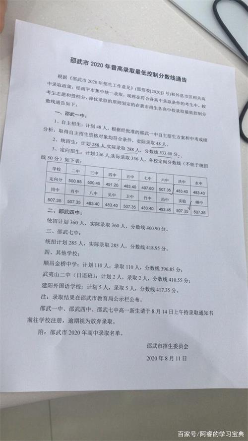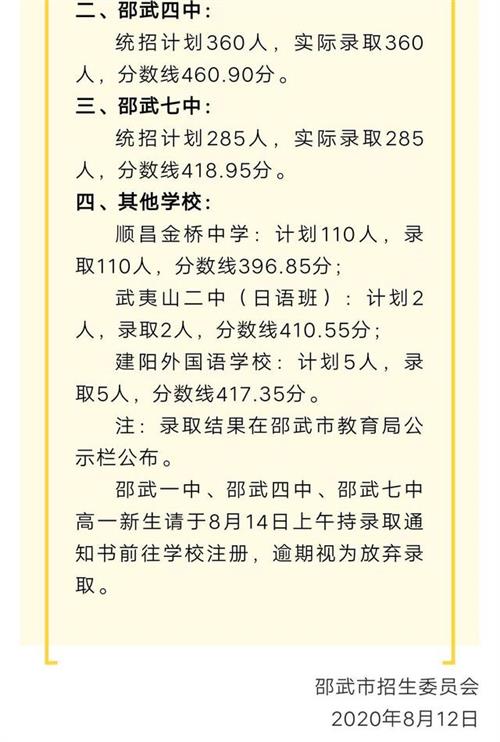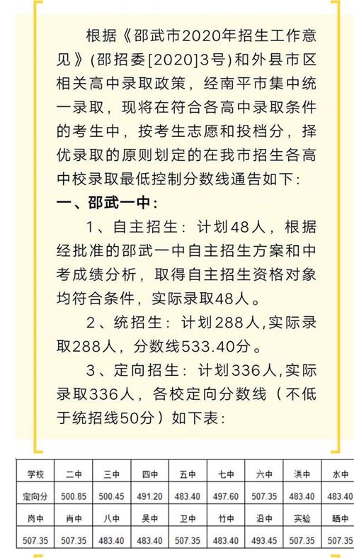 12日上午,邵武市教育局發(fā)布了本市中考錄取分?jǐn)?shù)線,其中邵武一中統(tǒng)招分?jǐn)?shù)線為533.4分,具體情況如下: