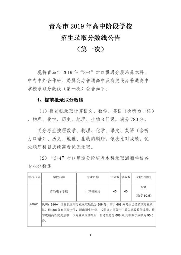 2019年青島市初中學(xué)業(yè)水平考試(以下簡稱中考)成績分?jǐn)?shù)線公布:公辦普高569分,二中702分!與去年相比普高分?jǐn)?shù)線低40分