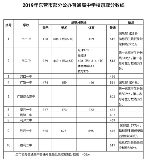 2019山東東營(yíng)中考分?jǐn)?shù)線(xiàn)公布