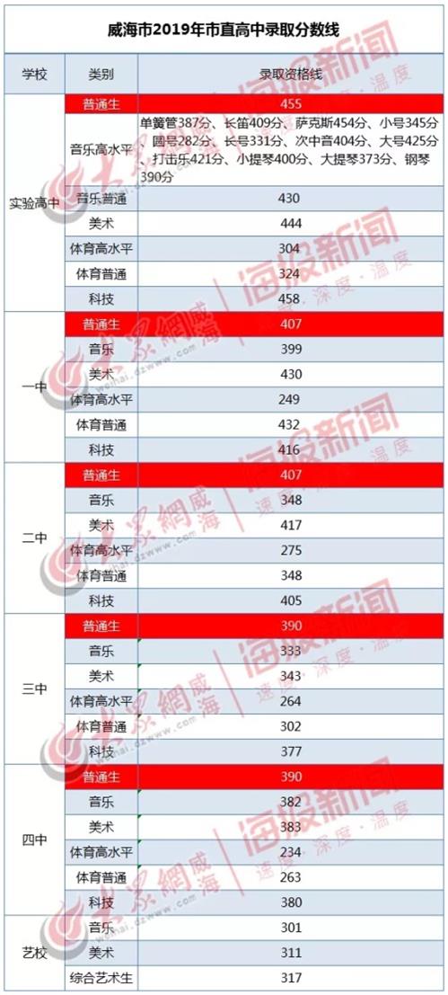 2019年山東威海中考錄取分?jǐn)?shù)線