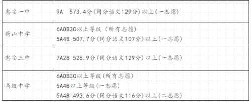 最低錄取分?jǐn)?shù)線為4A0B5C0D,惠安一中最低錄取分?jǐn)?shù)線為7A0B2C0D。具體見各校定向生招生錄取切線表;缺額定向生計劃面向定向生重新統(tǒng)招錄取切線: