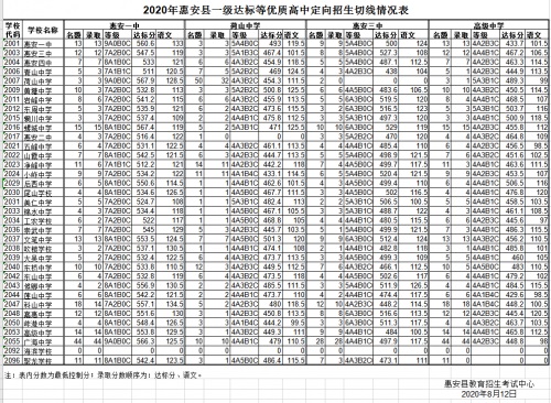 8月12日下午,惠安縣招委會召開全體委員會議,確定了2020年惠安縣普通高中招生錄取分?jǐn)?shù)線,具體切線如下: