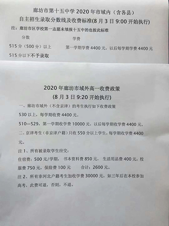 廊坊市十五中 2020廊坊市十五中錄取分?jǐn)?shù)線